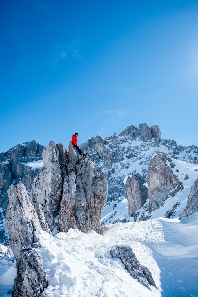 Riding the Gargellener Madrisa was a mission, but we made it with perfect snow conditions. Boot pack up, riding the couloir down 🙂