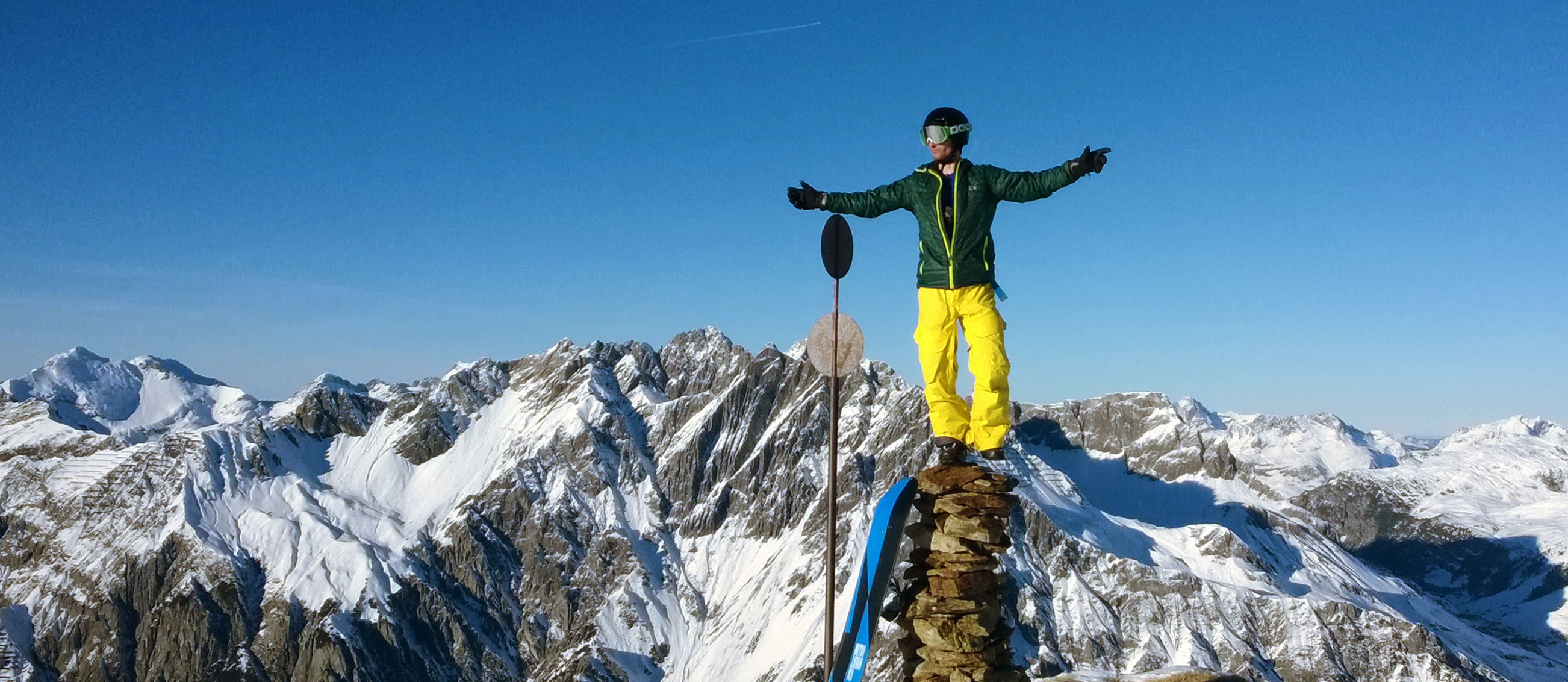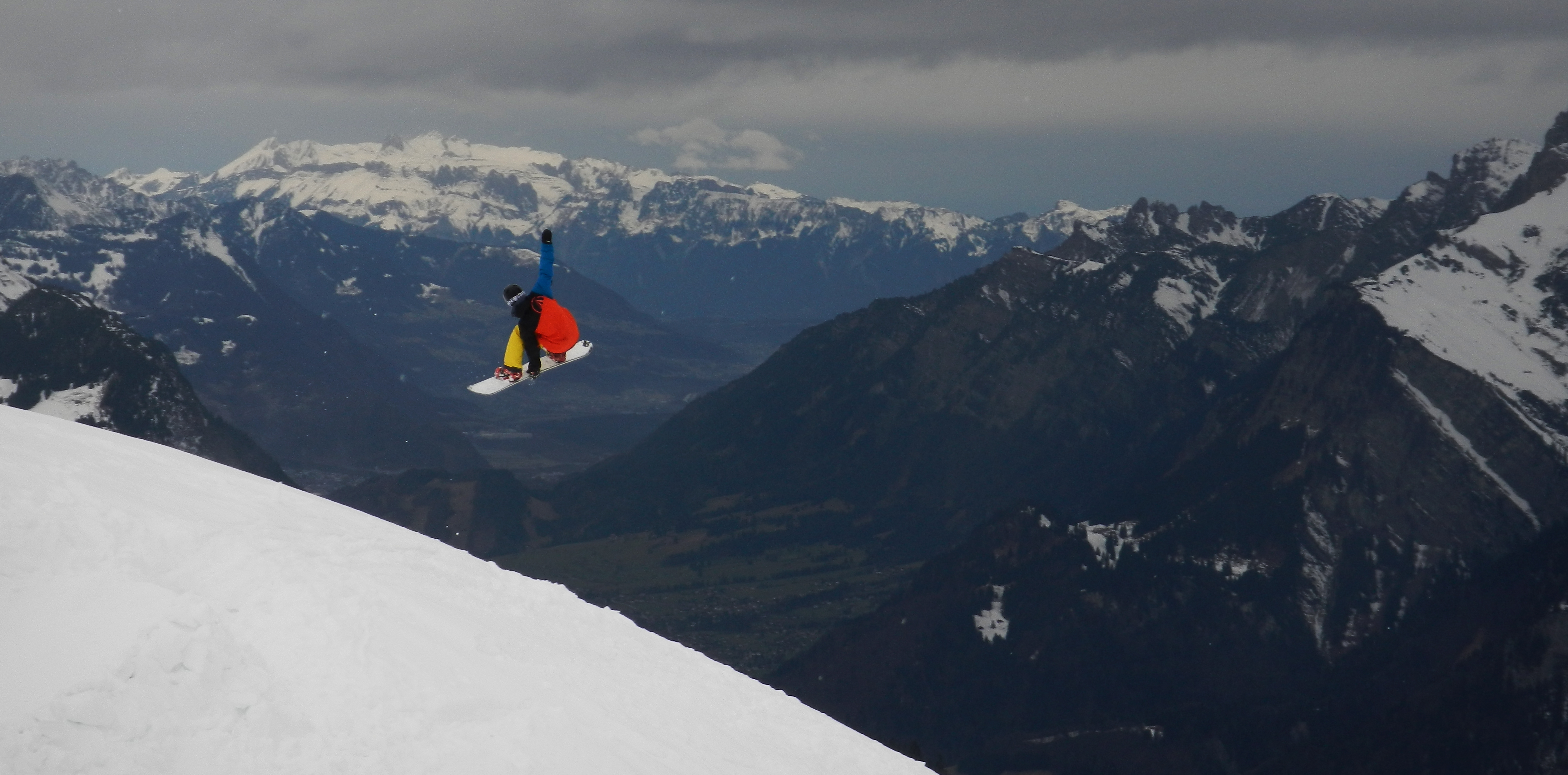 With my new sponsor Revert 95 I’m motivated to ride comps again. Last week I rode in St Moritz 3* competition. Super lot of snow, and for me a new face (part of the mountain where the competition takes part). It is a hard face to find your way, the face is concave. I missed my first cliff but drove into the steep and technical part quickly and took the double cliff as planned, the second was about 6 meters and I stumped it. I got the 3d place.